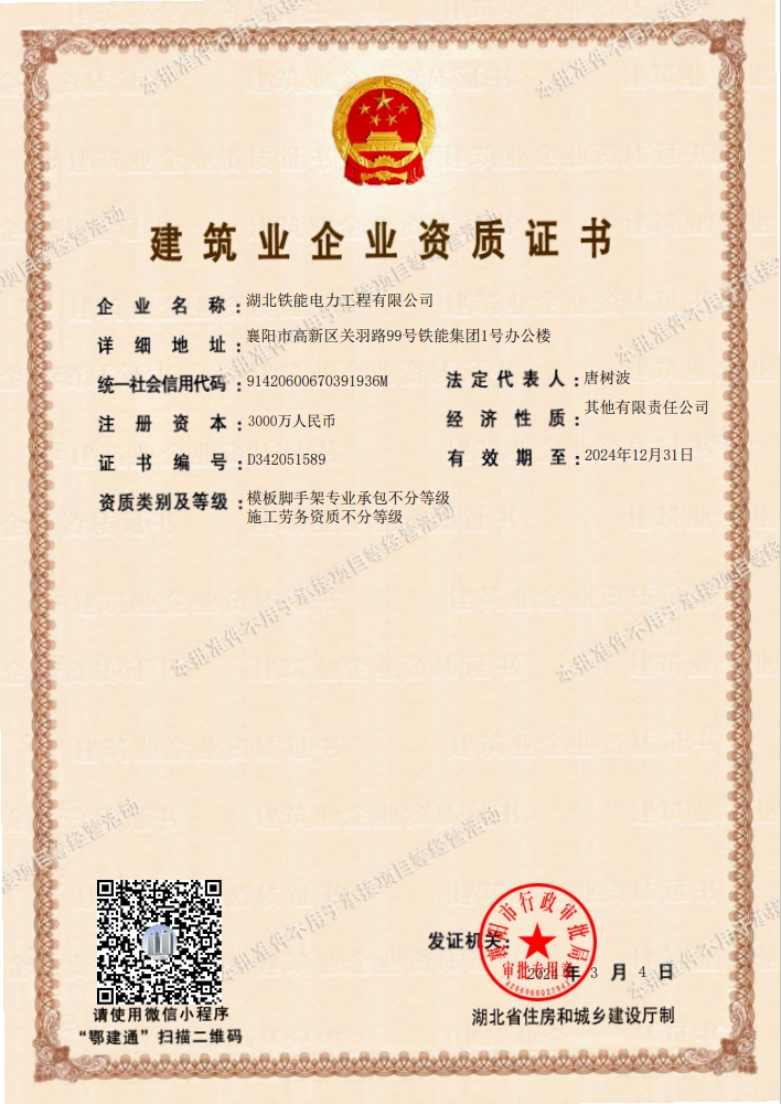 湖北鐵能電力工程有限公司成立于2008年,2019年6月遷入湖北鐵能電氣集團(tuán),公司注冊(cè)資金3000萬(wàn)元;可承擔(dān)單項(xiàng)合同額不超過(guò)企業(yè)注冊(cè)資本金5倍的110KV以下送電線(xiàn)路(含電纜工程)和同電壓等級(jí)變電站工程的施工;電力線(xiàn)路維修、檢修;送變電工程施工,房屋建筑工程施工,地基與基礎(chǔ)工程施工,土石方工程施工;電力工程咨詢(xún)服務(wù)。